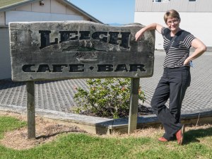 Leigh at Leigh’s cafe (sign)