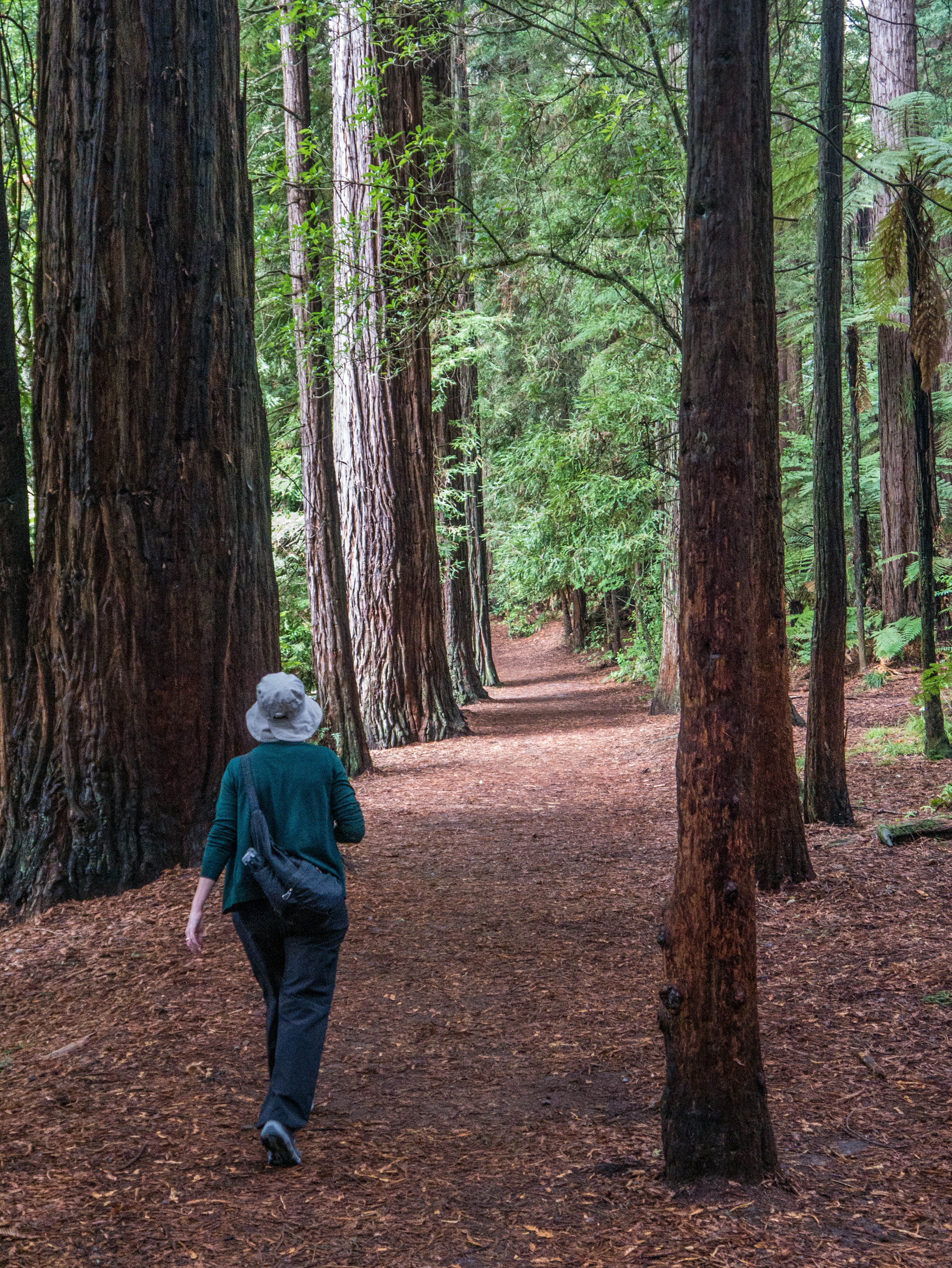 Leigh strolling through the redwoods