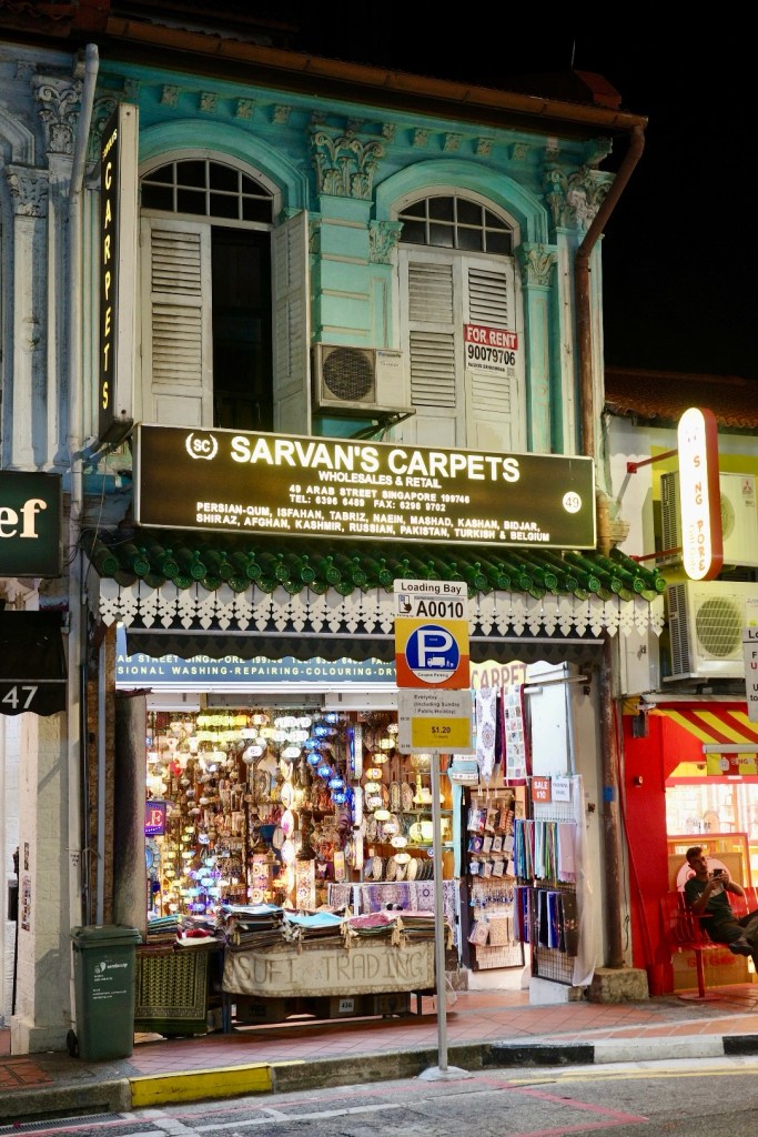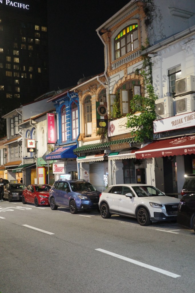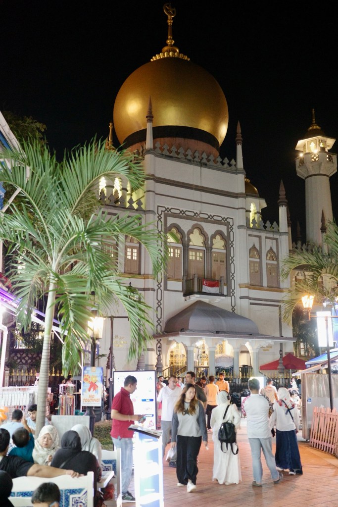We strolled through it all, past Turkish grills and Malay cafés, just taking in the energy of a Sunday night. The Sultan Mosque, with its great gold dome, serves as a reminder that this has been an important area for Singapore’s Malay-Arab community for a long time.